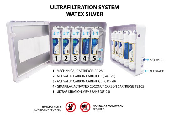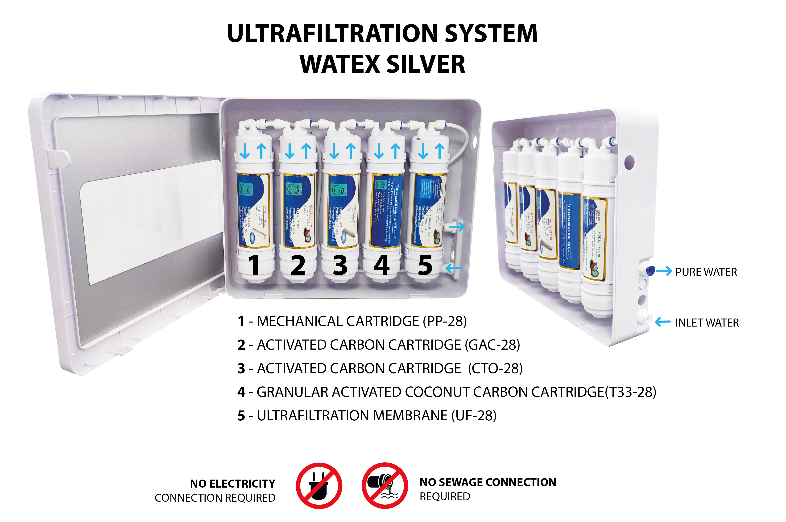 WATEX SILVER ultrafiltration drinking water filter cartridge set.