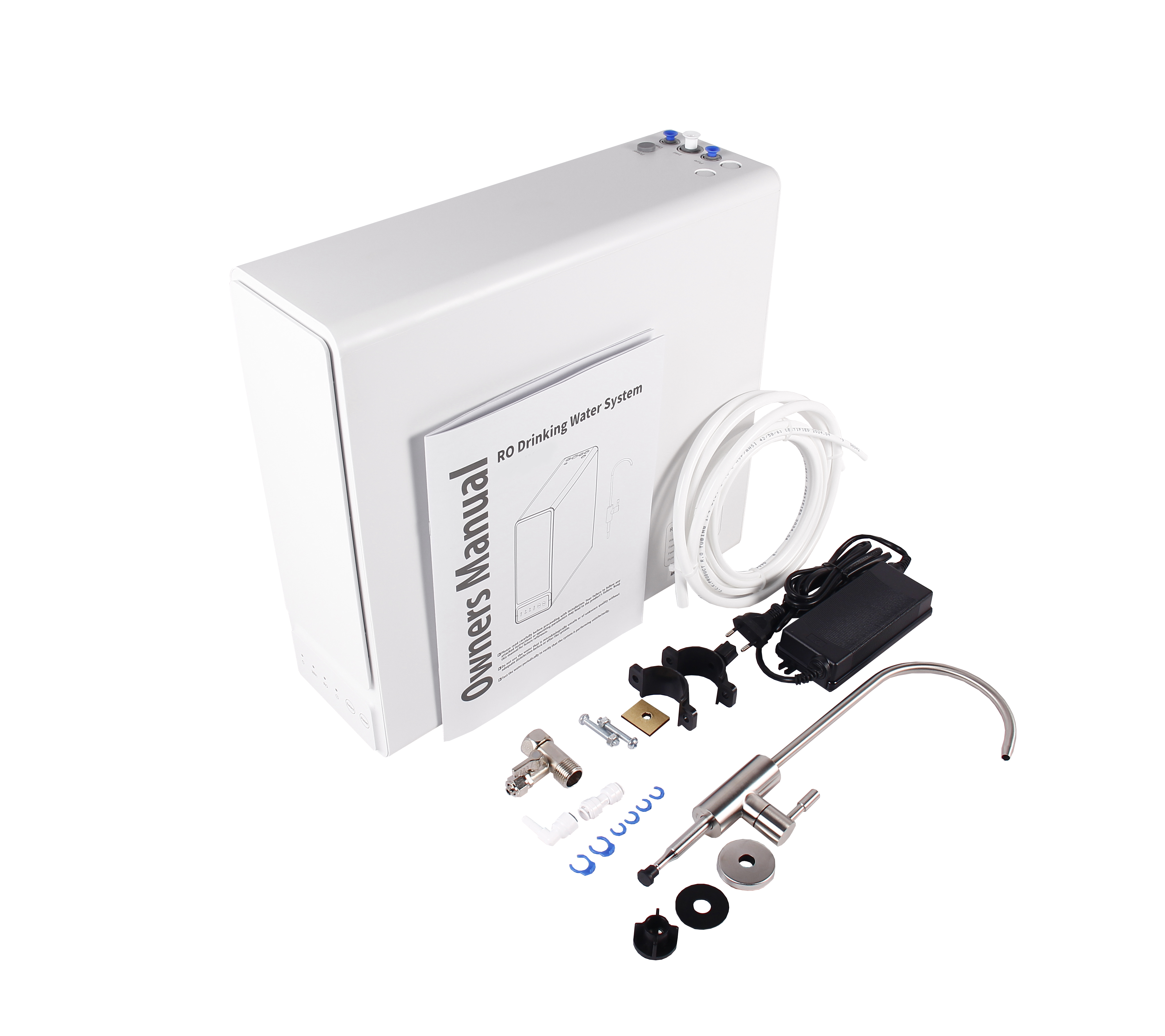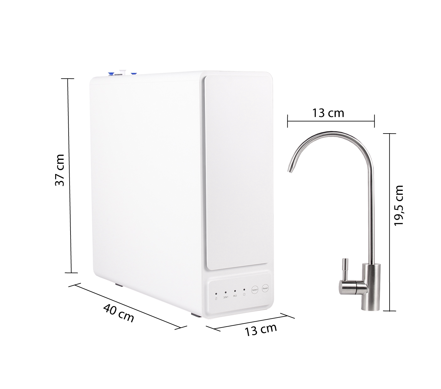 PurePlus is a powerful reverse osmosis drinking water system with a modern design. This unit provides high-quality water purification with a capacity of 1.5 liters/min, making it an excellent solution for households, offices, and catering businesses. The built-in LED indicators display cartridge wear, making it easy to identify and reminding you to replace them in a timely manner. The package includes a complete installation kit, ensuring quick and easy setup.