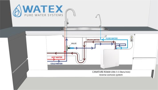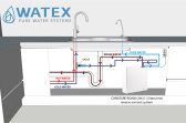 The membrane flushing water ratio – clean: flush – 1:1 (the flushing volume to the sewage system decreases with higher incoming pressure).