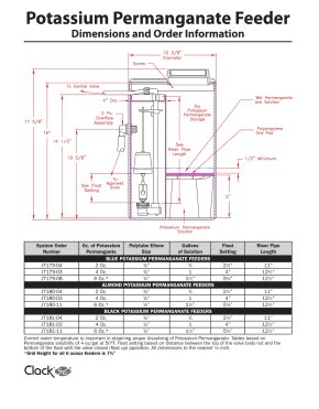 Clack's Potassium Permanganate Feeder Assembly incorporates a non-pressurized storage tank and innovative grid design along with our dependable 464 float valve. The attractive 10"x16" tank is made of tough blow molded high density polyethylene, and contains an ultraviolet inhibitor (UVI) for increased resistance to sunlight.* It has a Potassium Permanganate capacity of 13 kg and a liquid capacity of 18 liters. Feeders are available in blue, almond, or black and can be ordered in two, four, or six ounce delivery capacities.