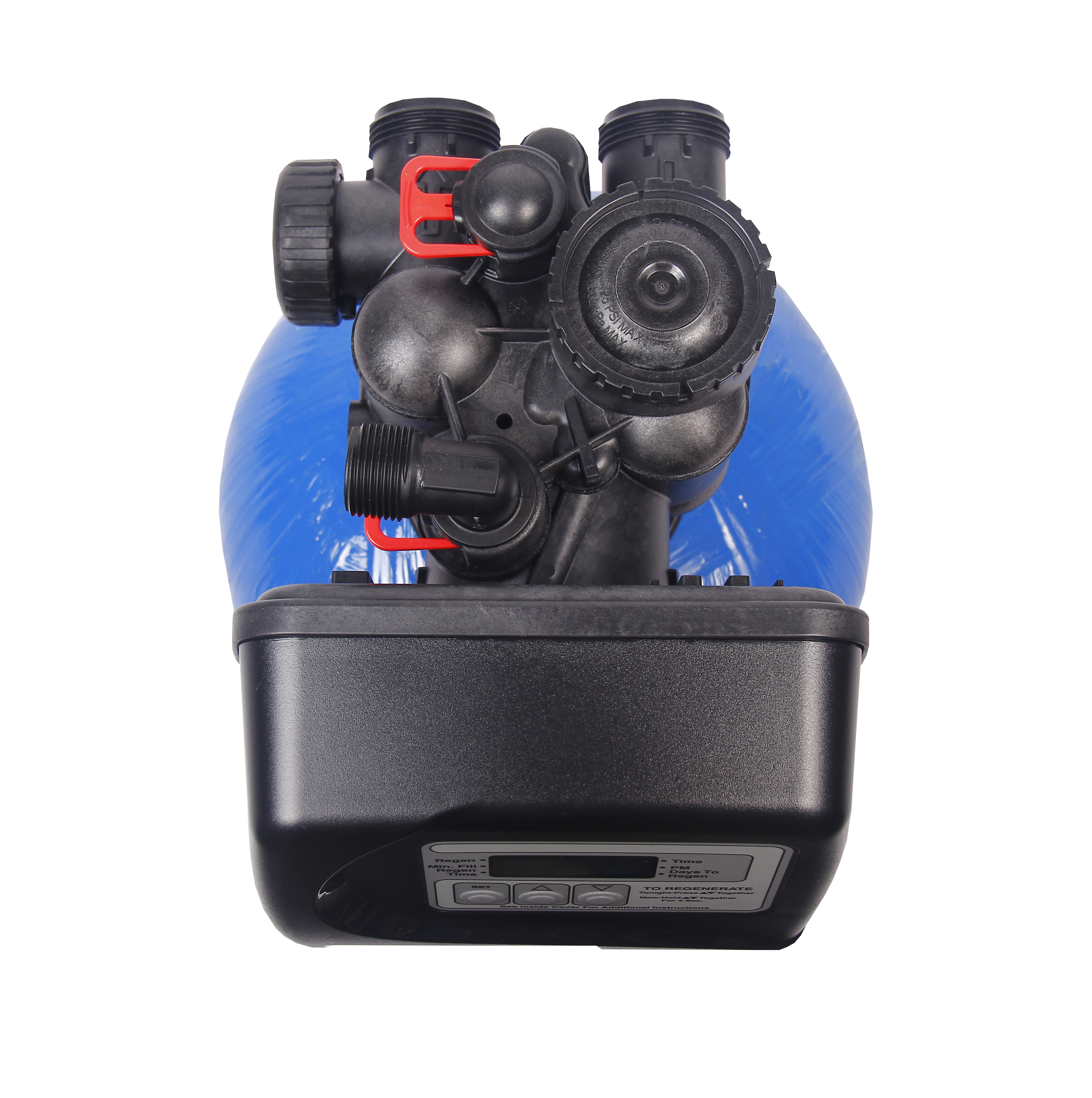 Front panel display showing time of day and days until next regeneration |