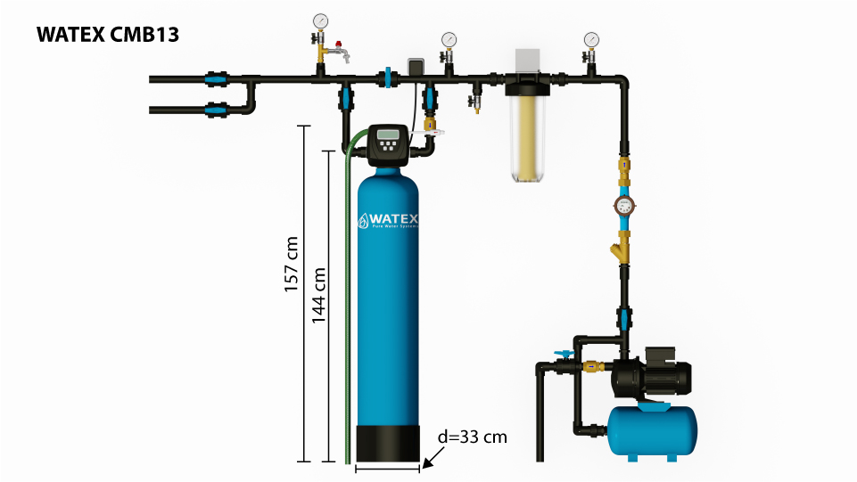 WATEX CMB13 is also used as a pre-filter for softener or organic removal filter, especially if the water has a specific smell.
