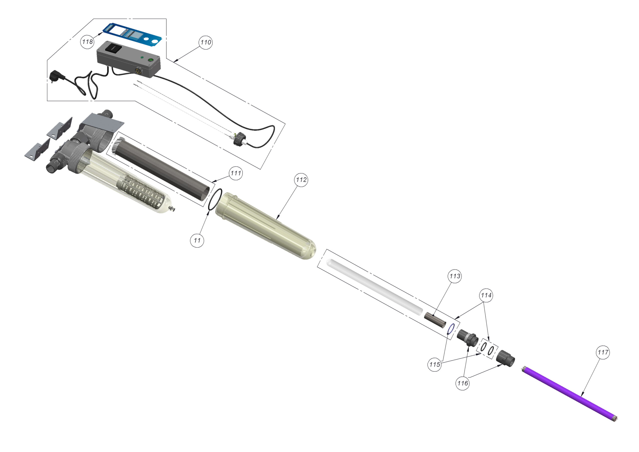 • Low operating costs: the UV lamp must be replaced once a year and the glass cover every 5 years. Easy replacement: the lamp must be rotated 5 °, which is enough to remove and replace the lamp (bayonet system)
