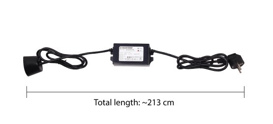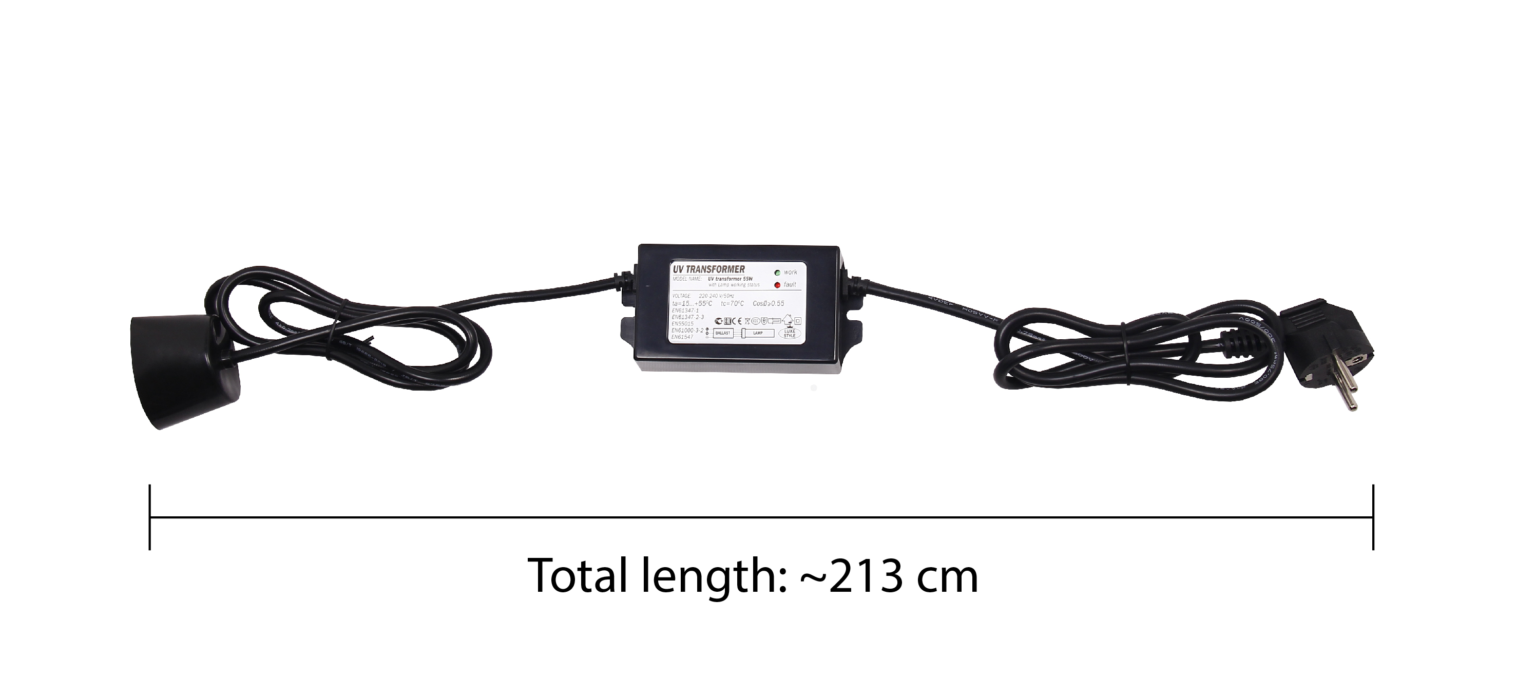Input – 230 V AC. Output – for 55 W UV lamp. Indoor use only.