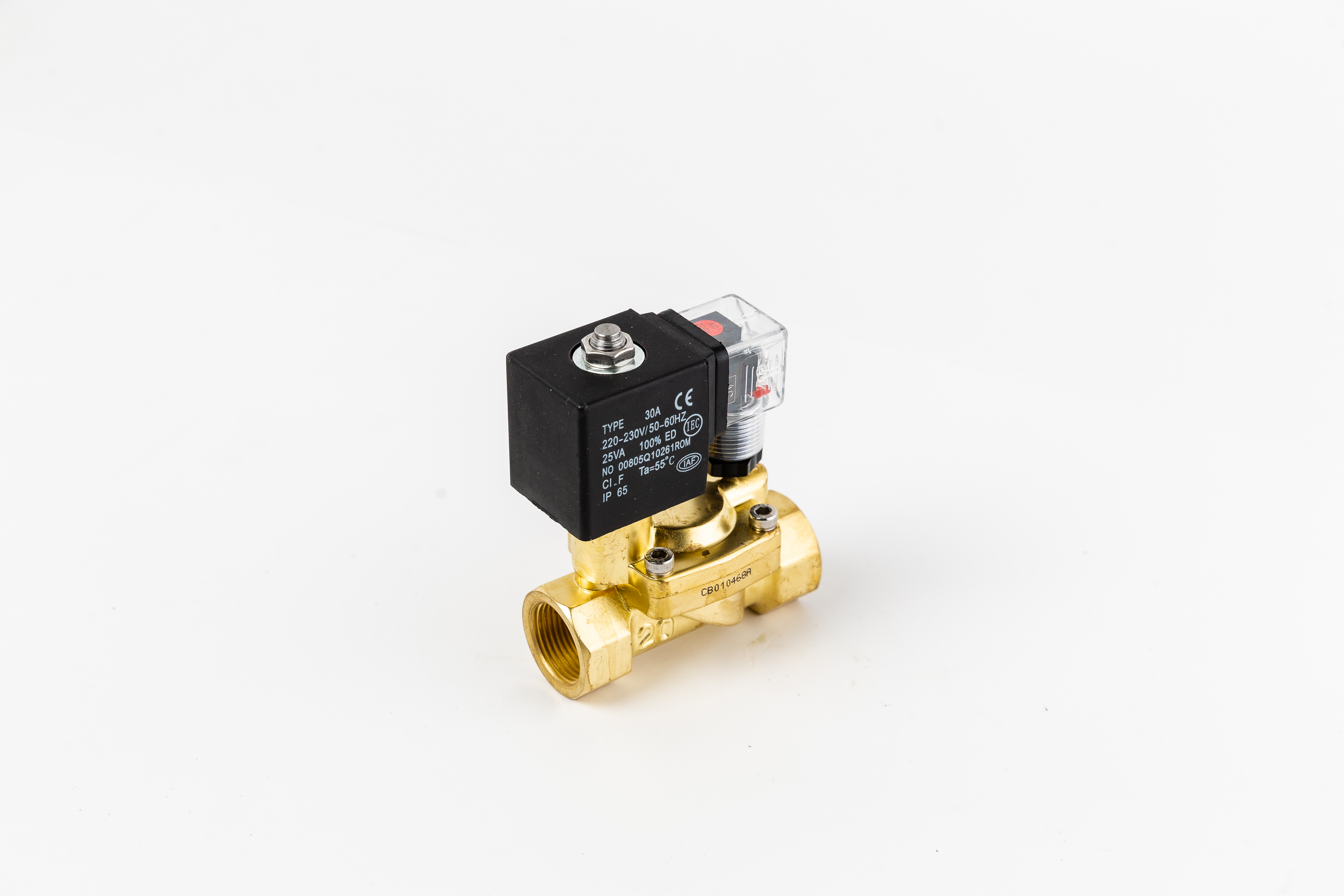 Izturīgs elektromagnētiskais vārsts ūdenim, gaisam, gāzei, vājām skābēm un sārmu šķidrumiem, vakuumam.