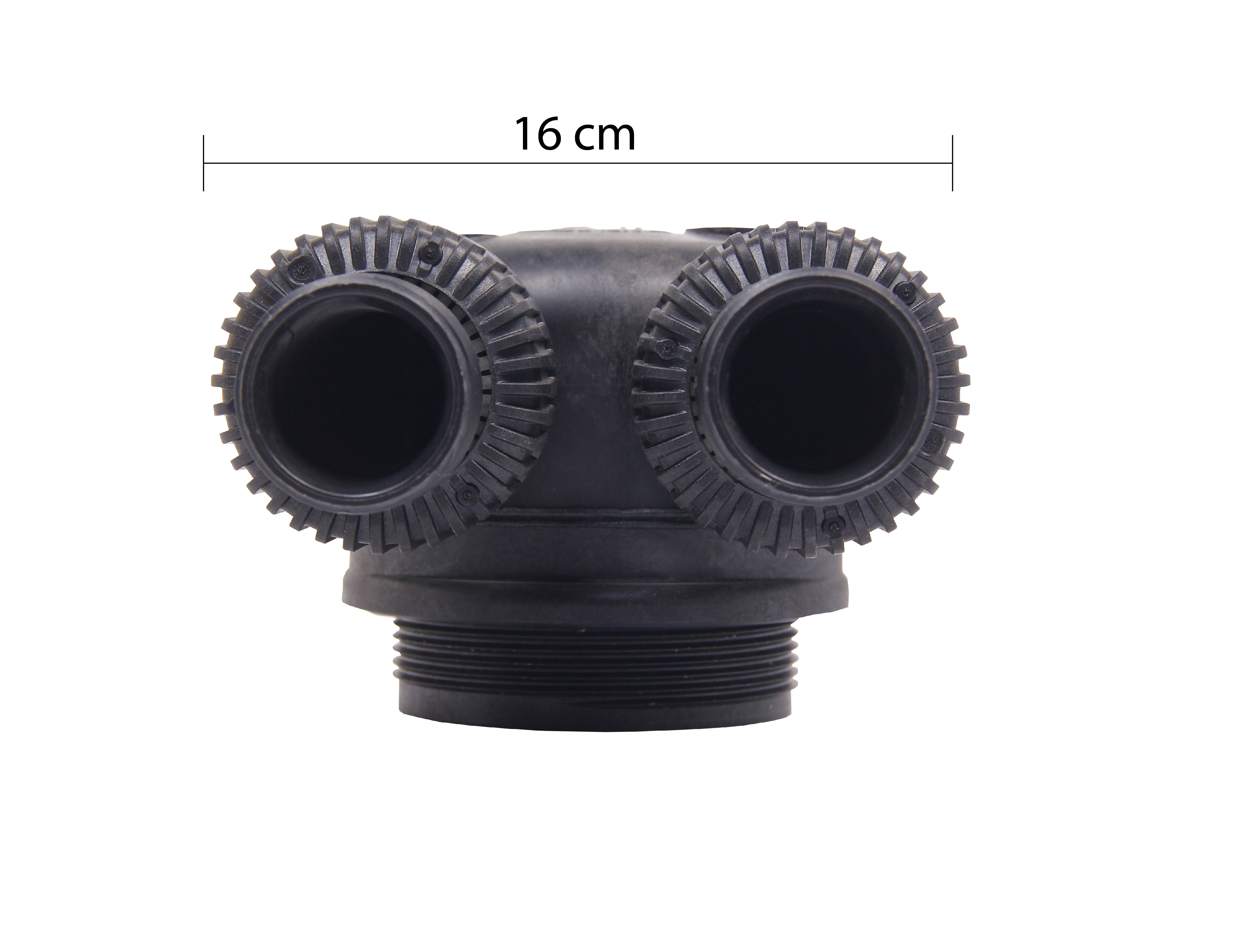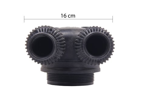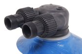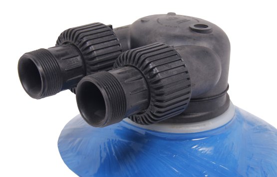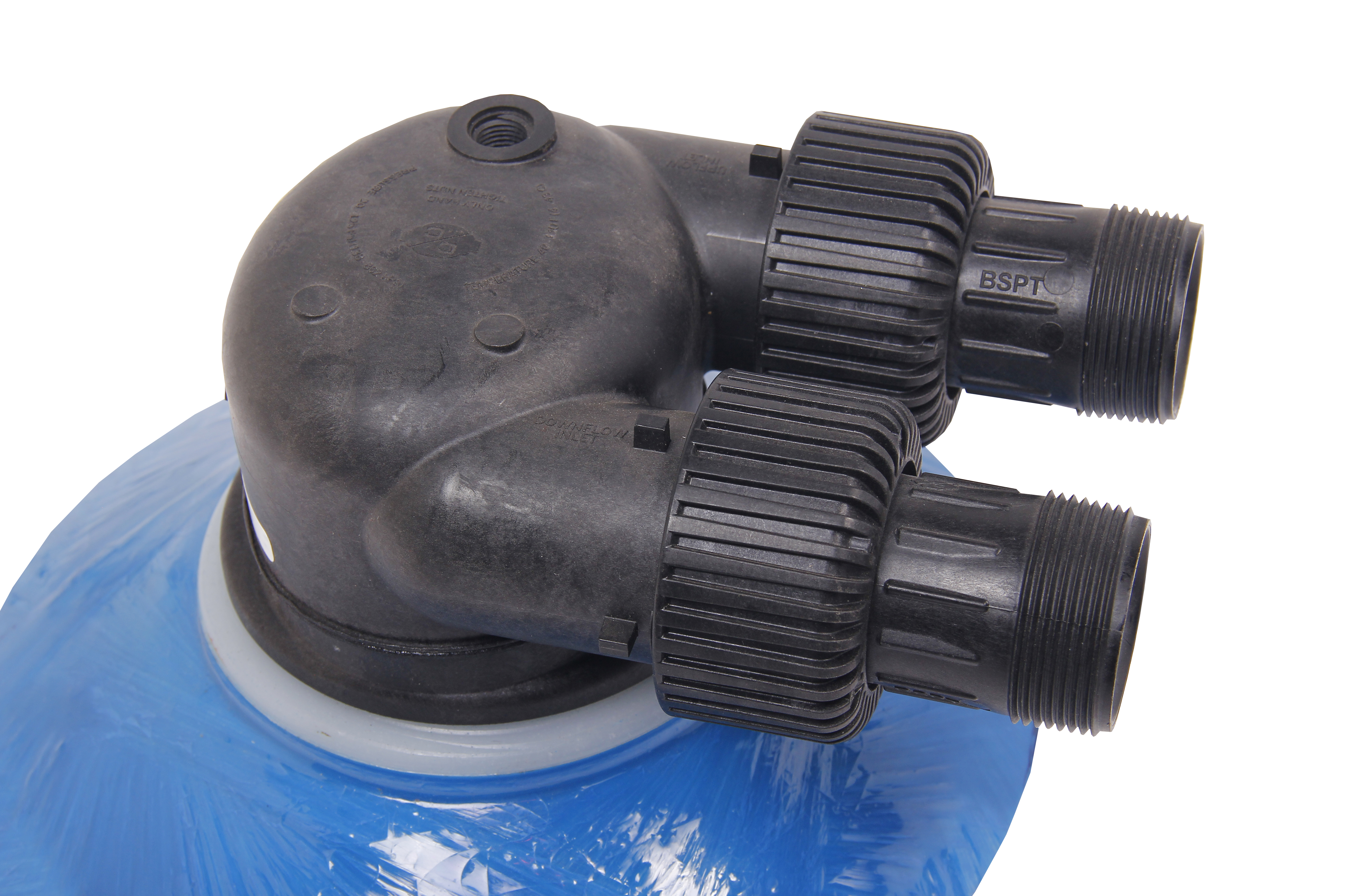 Apraksts: Augstas plūsmas galva ar ieeju/izeju, paredzēta ūdens mīkstināšanas vai filtrācijas iekārtām, 50 mm versija lielākiem tvertnēm vai sistēmām.