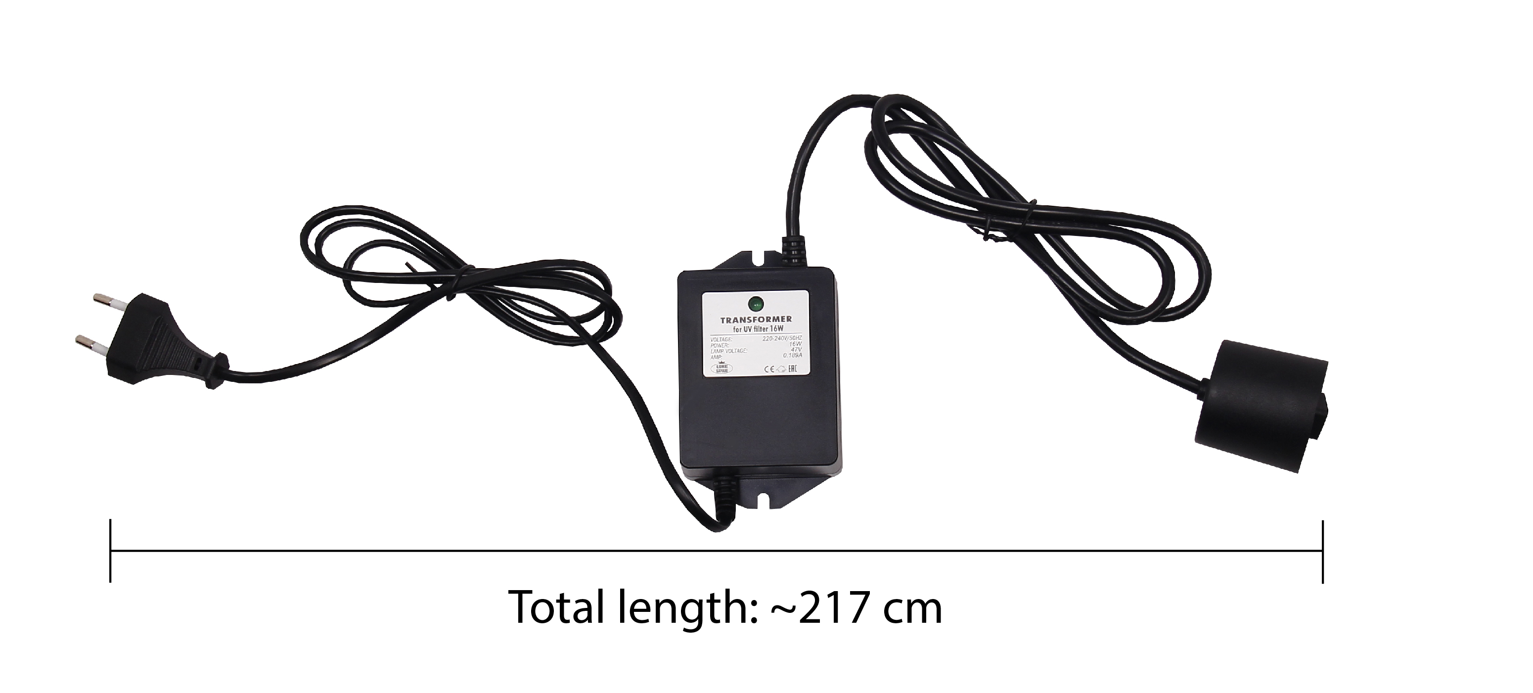 Pievads – 230 V AC. Izvads – 16 W UV lampai. Tikai iekštelpām.