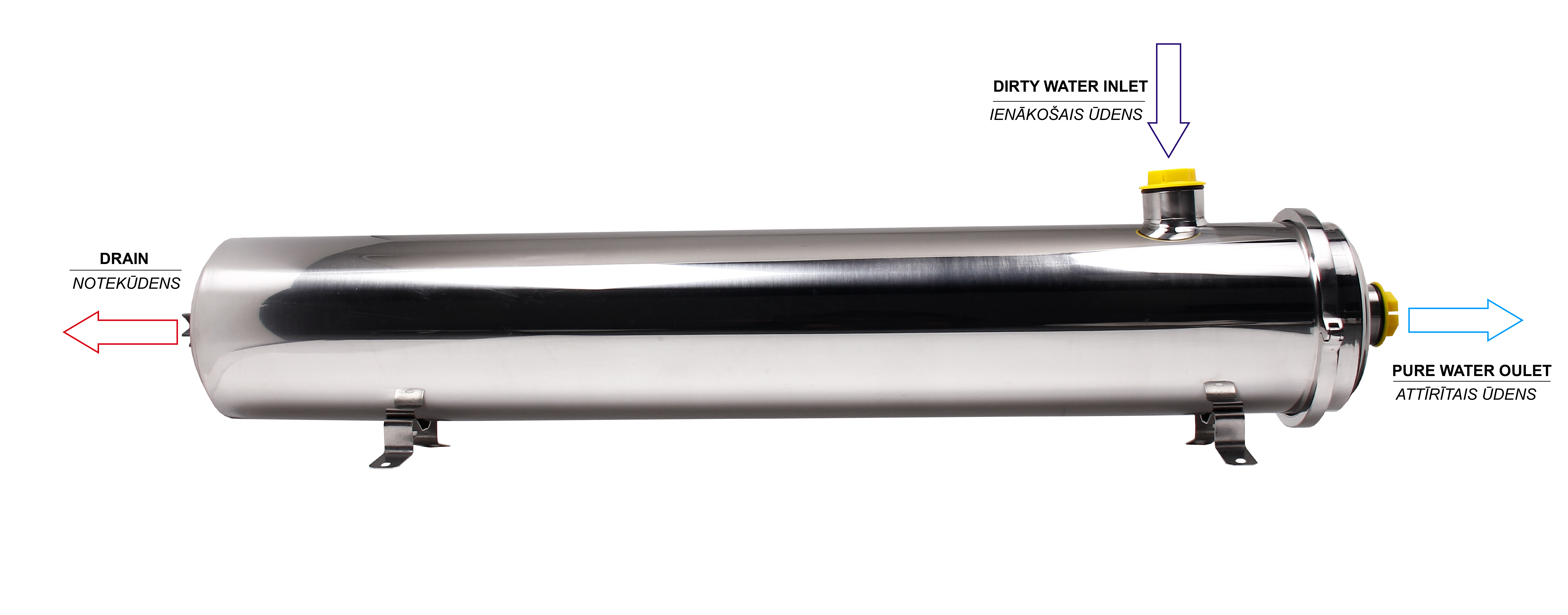 Iekārta efektīvi noņem duļķainību, suspendētās vielas, baktērijas un vīrusus, nodrošinot augstas kvalitātes filtrētu ūdeni bez ķīmisko vielu izmantošanas.
